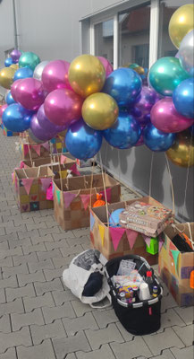 und Überlegungen war das Motto schnell klar. Es sollte natürlich „kunterbunt“ und recht einfach umzusetzen sein, aber trotzdem auffallen. Als „Ballonfahrer“, angelehnt an die berühmte Pionierin der Luftfahrt Käthe Paulus aus Zellhausen wollten wir durch selbige