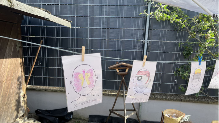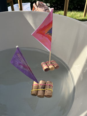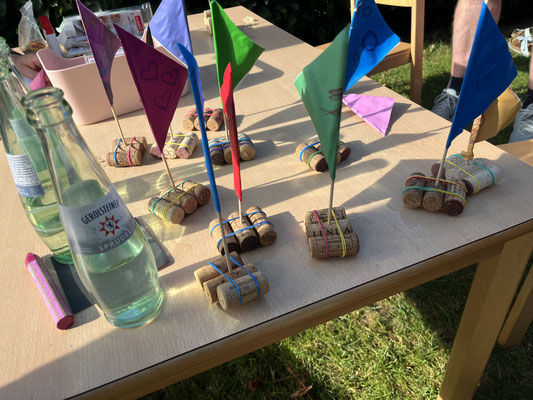 Wie auch im vergangenen Jahr gestalteten Eltern liebevoll verschiedene Stände, an denen die Kinder kreative Angebote wahrnehmen konnten. Dabei wurde es wieder besonders vielfältig: T-Shirts, Kleider oder auch Beutel konnten mit Batikfarben kunterbunt gefärbt werden. Gesichter wurden – nach Auswahl verschiedenster Vorlagen oder auch nach eigenen Ideen – abenteuerlich geschminkt. Handwerkliches Geschick brauchte, wer ein kleines Boot aus Korken bauen wollte – natürlich mit anschließendem Schwimm-Test.