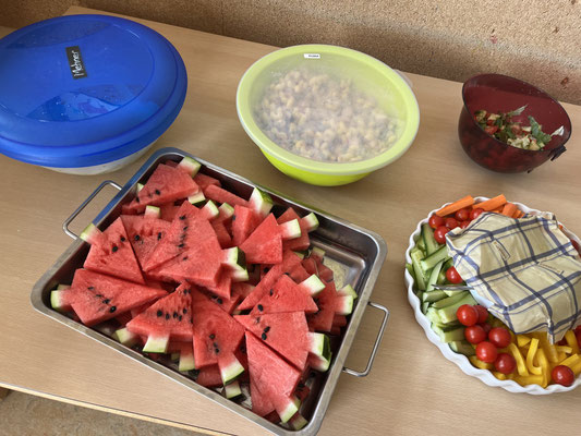 Eine Stärkung an diesem tollen sommerlichen Tag bot allen ein tolles Buffet, zu dem jede Familie etwas beigesteuert hatte.